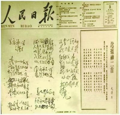1958年6月30日,《人民日报》以《第一面红旗——记江西余江县根本消灭血吸虫病的经过》为题,报道了当地消灭血吸虫病的消息。此时65岁的毛泽东,得知这一消息后,激动不已,欣然命笔,写成了不朽的诗篇《送瘟神二首》。