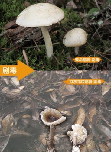 含剧毒的致命鹅膏和拟灰花纹鹅膏。图片来源:中国疾病预防控制中心