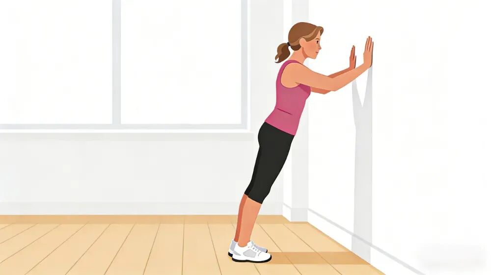 3.推墙俯卧撑:双手与肩同宽贴于墙面,身体保持直线,屈肘让前额轻触墙面,10-15次为一组,新手友好,激活上肢肌群。