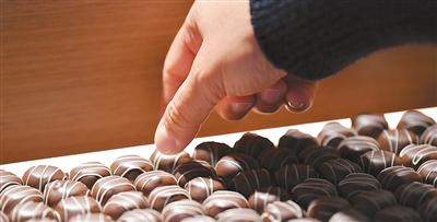 10月1日,在瑞士格吕耶尔地区布罗克的凯雅巧克力博物馆,参观者品尝巧克力。 |