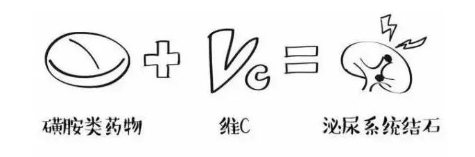 磺胺类药物及其代谢产物在酸性环境中易形成磺胺结晶盐,而形成泌尿系统结石,导致肾脏损害。故在服用磺胺类药物时,不可同时服用维生素C。