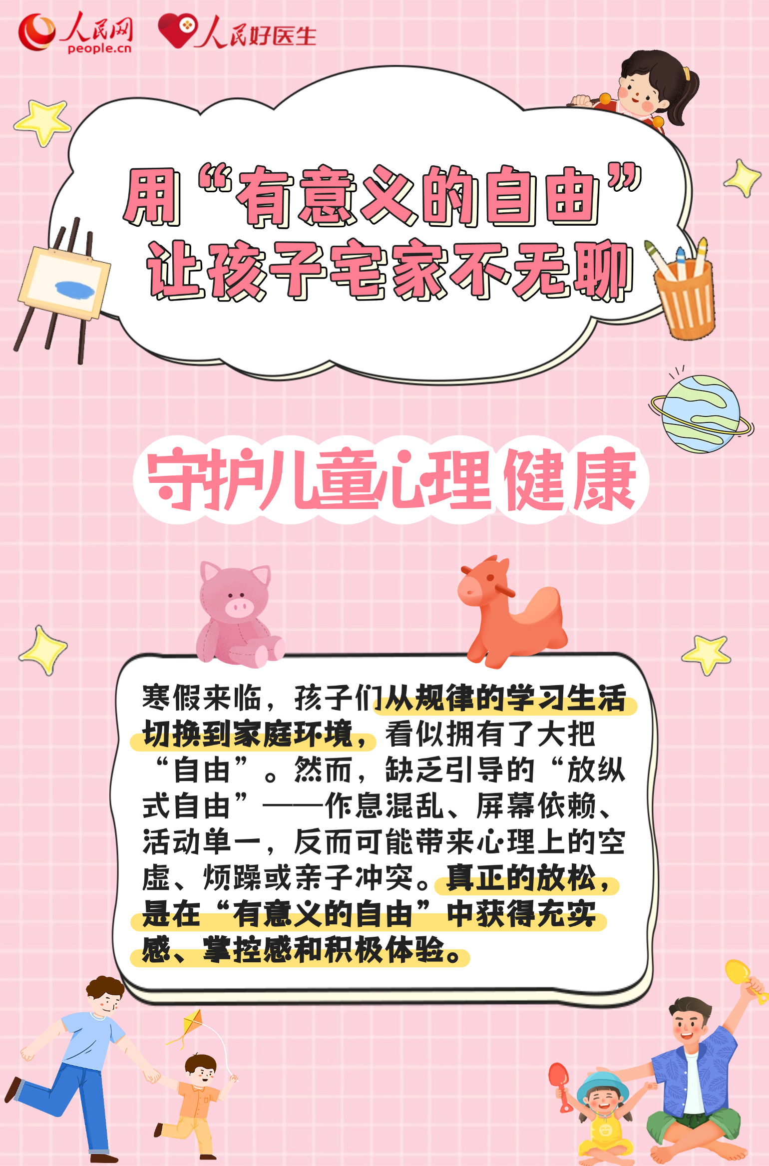 编者按:寒假来临,这既是孩子放松身心的时光,也是健康习惯养成的“黄金窗口期”。人民网、人民好医生联合推出守护青少年假期健康成长系列稿件。本系列从心理、护眼、饮食三大维度出发,为孩子打造科学、实用的健康方案。让孩子在假期中养成良好习惯,既享受宅家的快乐,又能在这个冬天收获健康与成长。